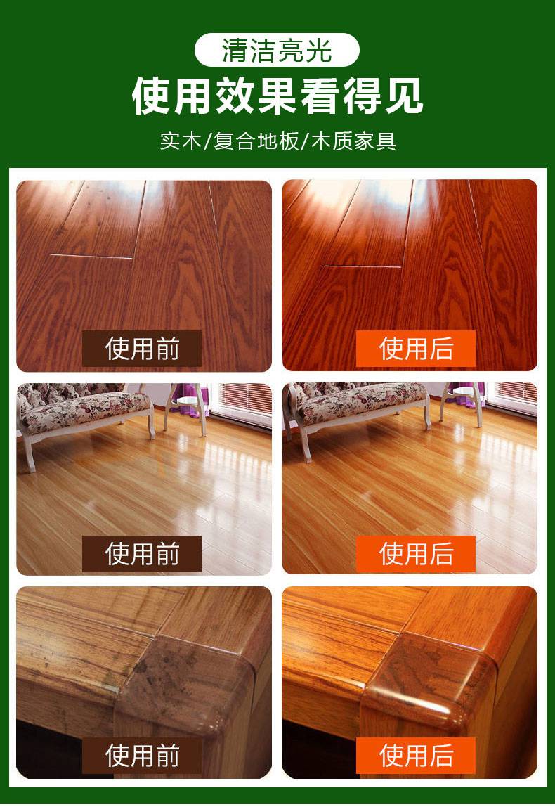 2、用微濕抹布抹勻木地板表面上的油精,可同時(shí)去污。